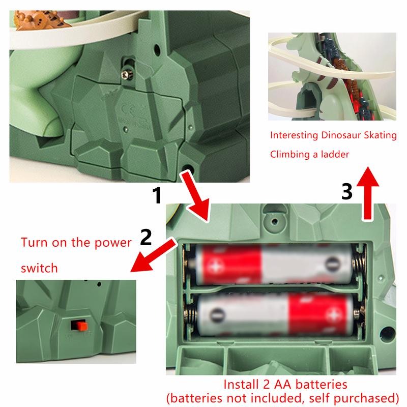 Watch in awe as mini dino cars automatically climb the electric ladder and slide down again and again, delivering endless motion-based fun.